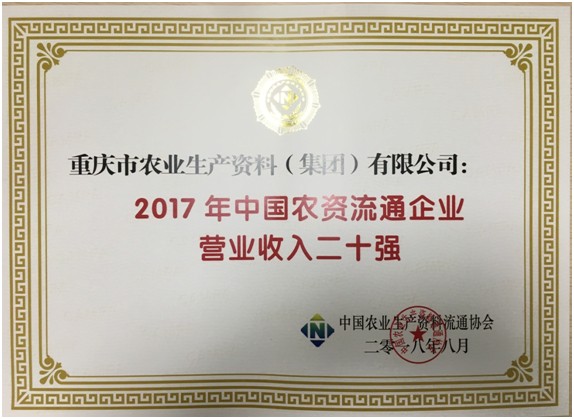 重慶農(nóng)資集團在“2017年中國農(nóng)資流通企業(yè)營業(yè)收入20強”企業(yè)位列第十!