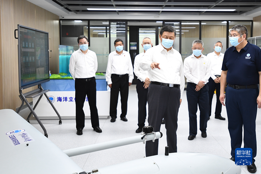4月10日至13日,中共中央總書記、國家主席、中央軍委主席習(xí)近平在海南考察。這是10日下午,習(xí)近平在中國海洋大學(xué)三亞海洋研究院考察。新華社記者 燕雁 攝