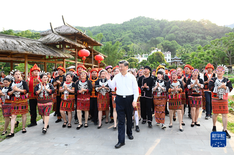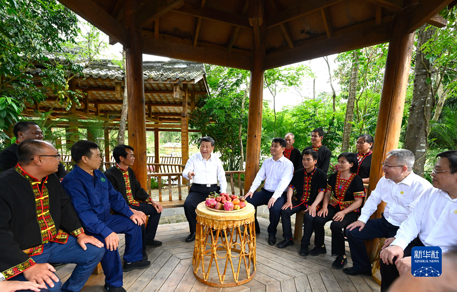 4月10日至13日,中共中央總書記、國家主席、中央軍委主席習(xí)近平在海南考察。這是11日下午,習(xí)近平在五指山市水滿鄉(xiāng)毛納村同村民們親切交流。新華社記者 李學(xué)仁 攝
