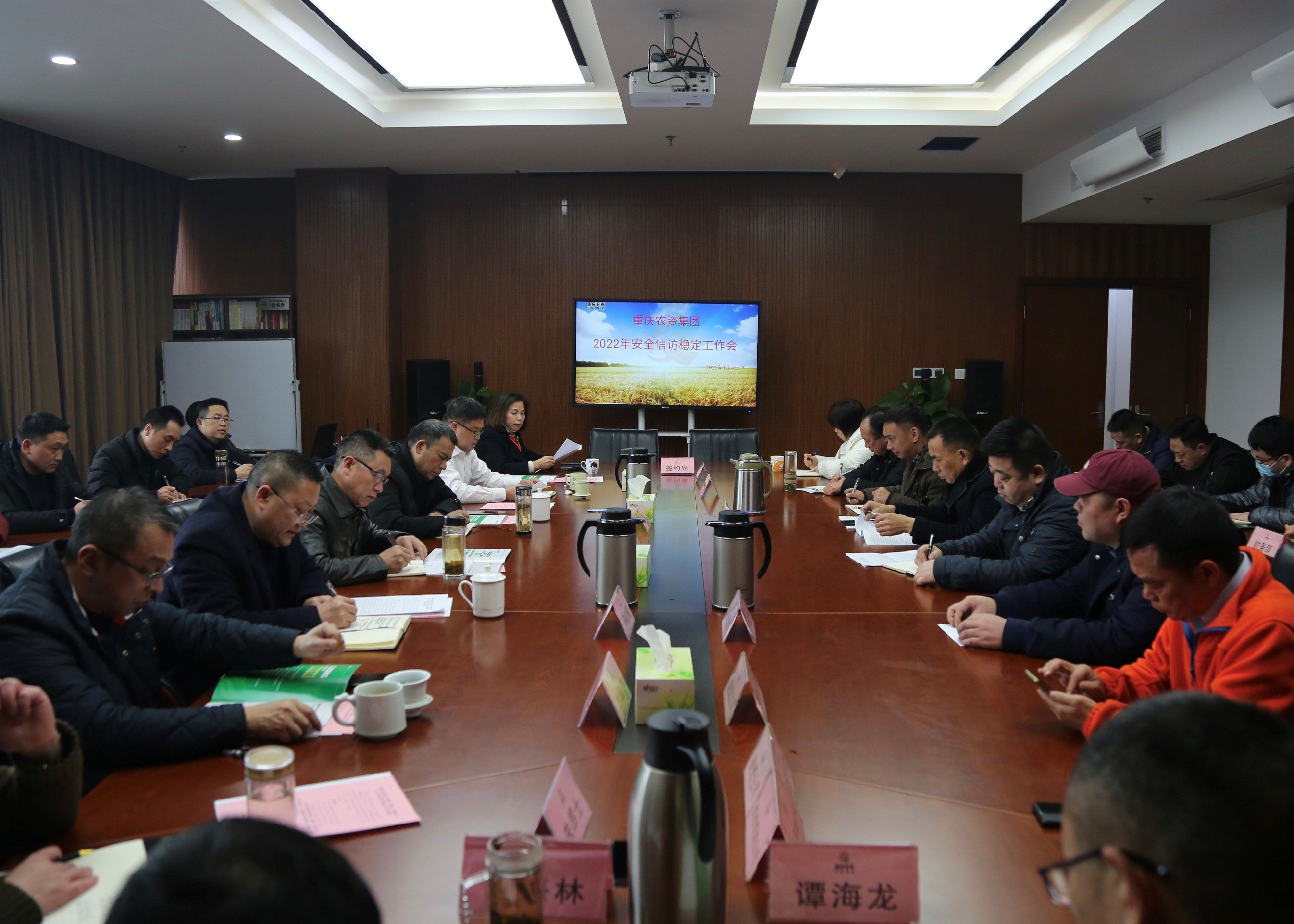 2022年1月4日下午,重慶農(nóng)資集團(tuán)召開了2022年安全穩(wěn)定工作會。會議由集團(tuán)黨委書記、董事長彭強主持,集團(tuán)班子成員、管理部室負(fù)責(zé)人、各子公司負(fù)責(zé)人、安全穩(wěn)定工作人員參加。市供銷合作總社黨委委員、二級巡視員張恩開、市供銷合作總社信訪應(yīng)急處處長廖正國、市供銷集團(tuán)副總經(jīng)理宋紅星到會指導(dǎo)工作。