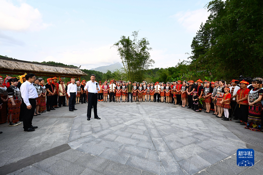 4月10日至13日,中共中央總書記、國家主席、中央軍委主席習(xí)近平在海南考察。這是11日下午,習(xí)近平在五指山市水滿鄉(xiāng)毛納村同村民們親切交流。新華社記者 李學(xué)仁 攝